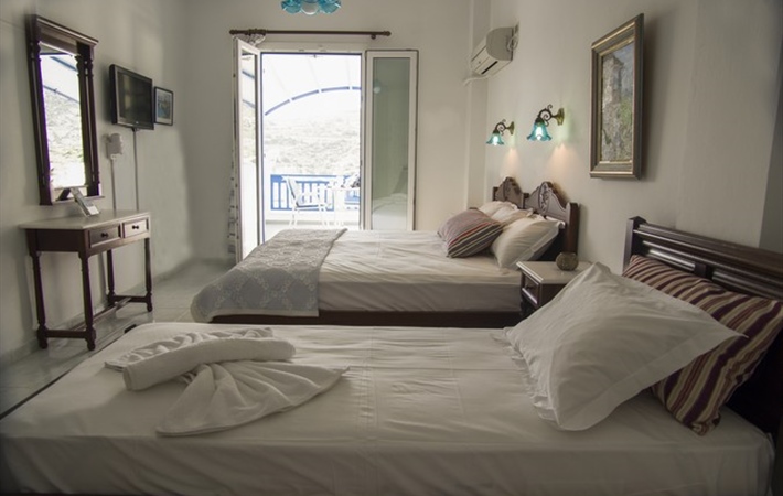 Calliope Apartment is a spacious 2-3 people Studio of 26sqm with a 14sqm private terrace with pergola overlooking the sea. It is located on the first floor offering breathtaking view and privacy. The Studio apartment is fully decorated with carved furniture. Furthermore, it is equipped with a fridge, a practical kitchenette and kitchen utensils meeting your everyday needs and giving you the opportunity to have breakfast or any other meal in the apartment.